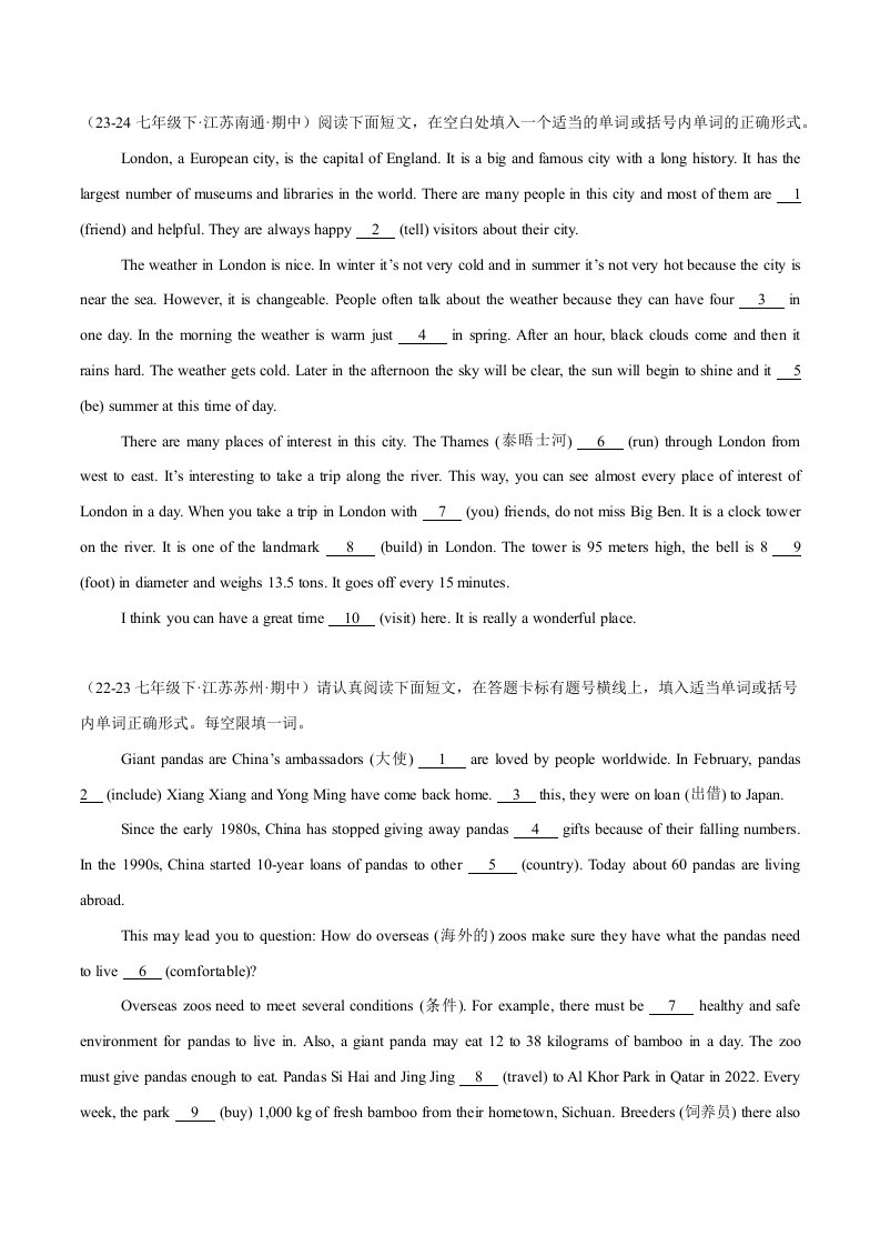 > 七下英语 语法填空12篇-(译林版)(含答案)QXYYYL-0504