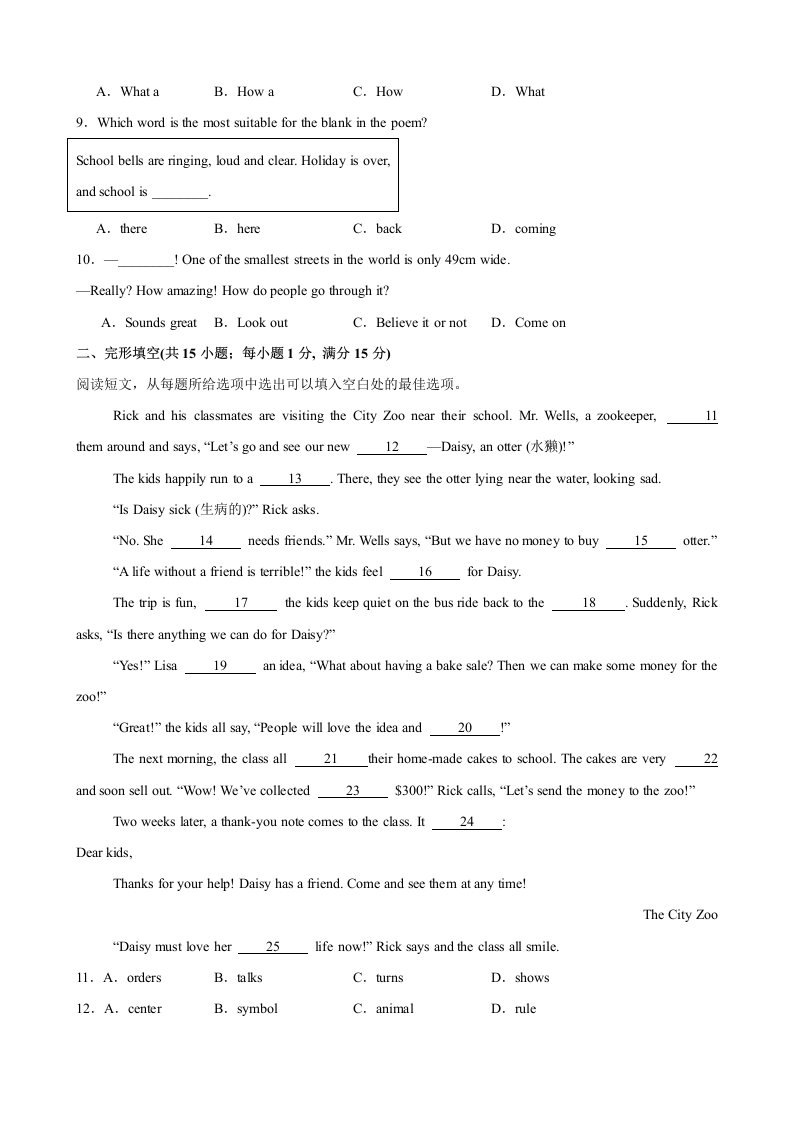 > 七年级英语译林版 下学期5月第三次月考(泰州专用)(含答案)QXYYYL-0402