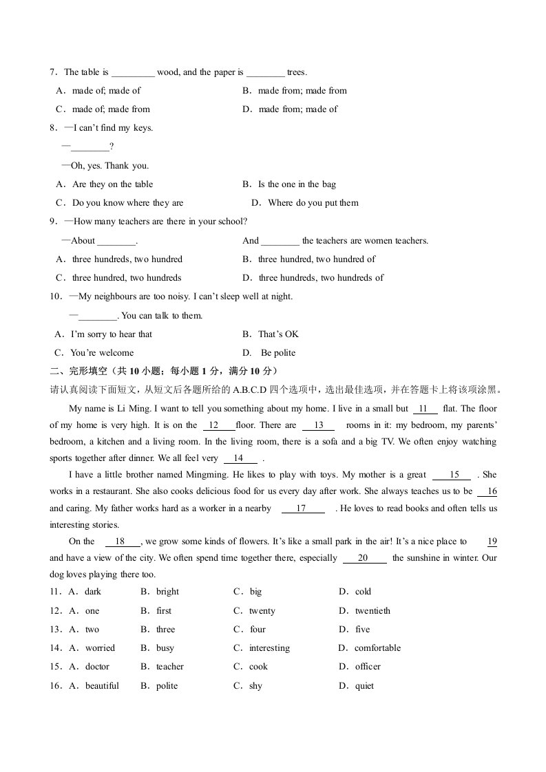 七年级下册英语月考卷(Units 1~2)(译林版)(含答案)QXYYYL-0374