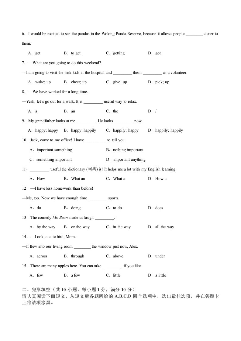> 七下英语 第三次月考(Units 5-6)(南京专用)(译林版)(含答案)QXYYYL-0384