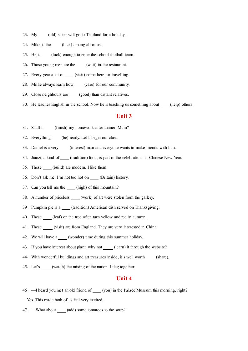 七下英语 用所给词的正确形式填空120题(期末复习Unit 1-8)(含答案)(译林版)QXYYYL-0343