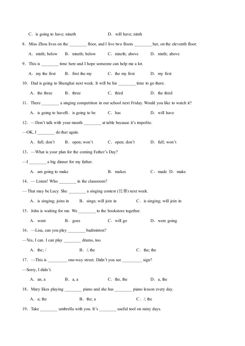> 七下英语 期末复习Units 1-8语法集训(含答案)(译林版)QXYYYL-0339
