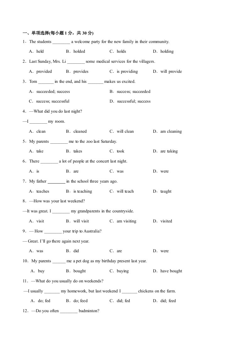 > 七下英语Unit 7一般过去时(1)(重点语法提升练)-(译林版)(含答案)QXYYYL-0287
