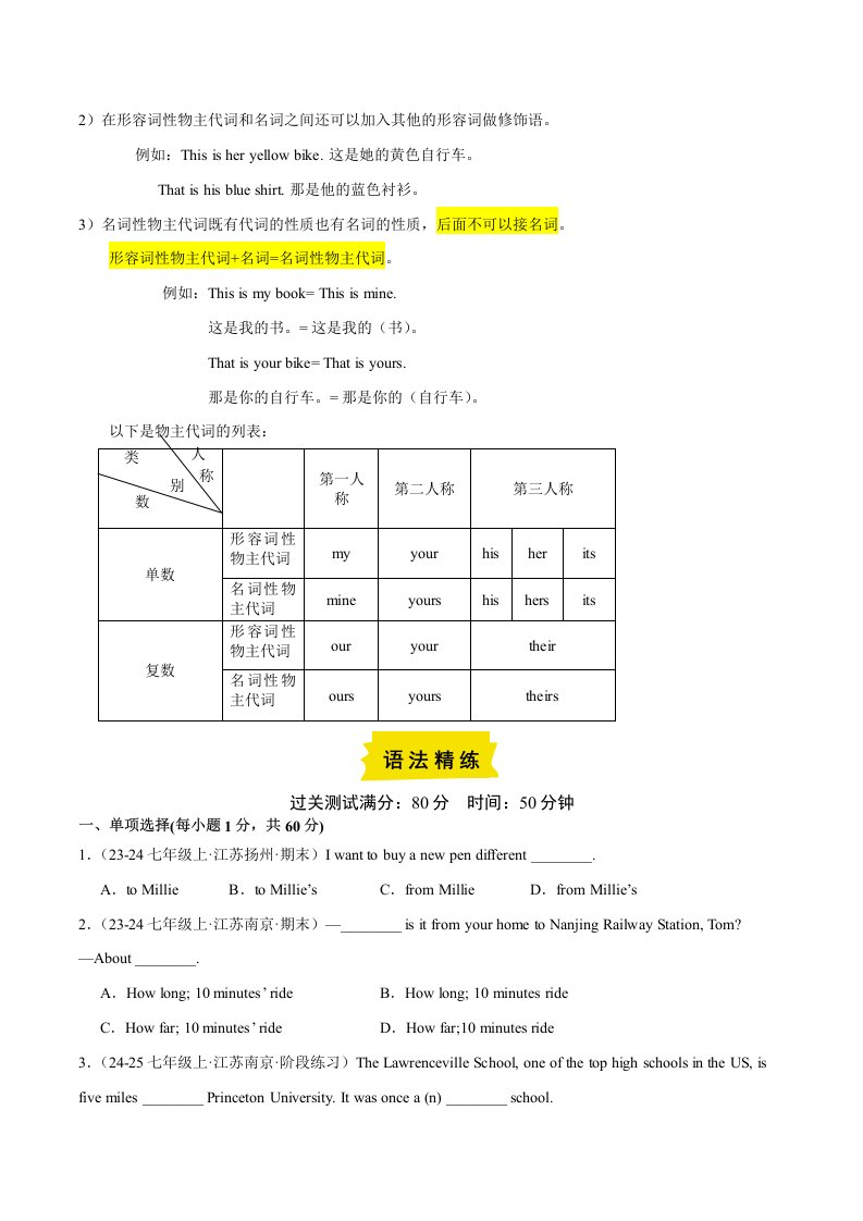 > 七下英语 Unit 4名词所有格和物主代词(重点语法提升练)-(译林版)(含答案)QXYYYL-0281
