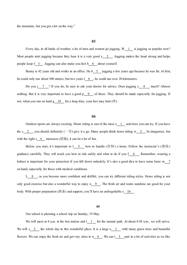 > 七下英语Unit 7短文首字母填空精准练)-(译林版)(含答案)QXYYYL-0253