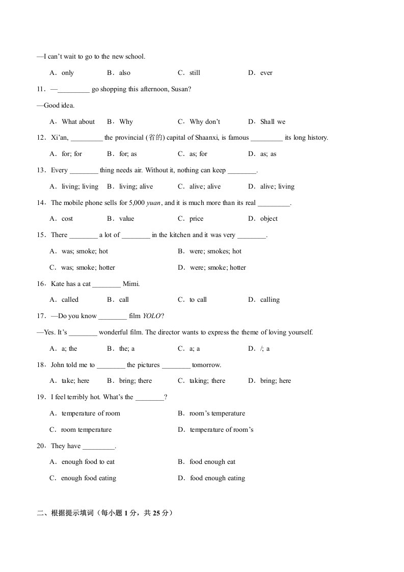 > 七下英语Unit 4词法句法过关练-(译林版)(含答案)QXYYYL-0236