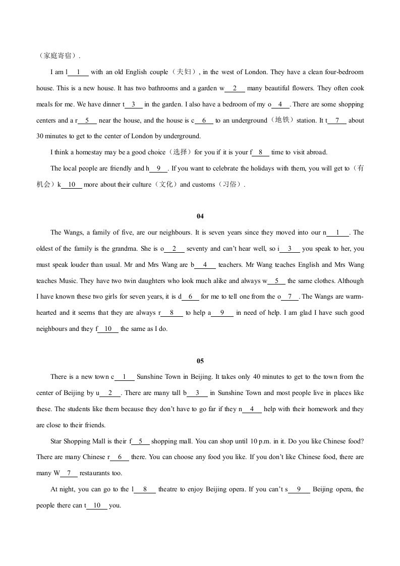 > 七下英语Unit 2短文首字母填空精准练)-(译林版)(含答案)QXYYYL-0243