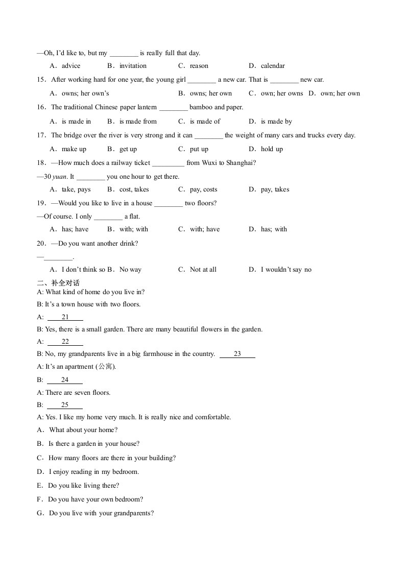七年级下册英语(牛津译林版)U1 Home 学案QXYYYL-0453