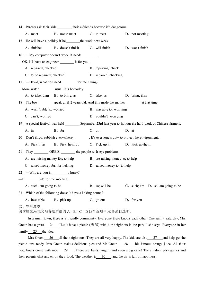> 七下英语译林Unit 2 单元测试(含答案)QXYYYL-0213