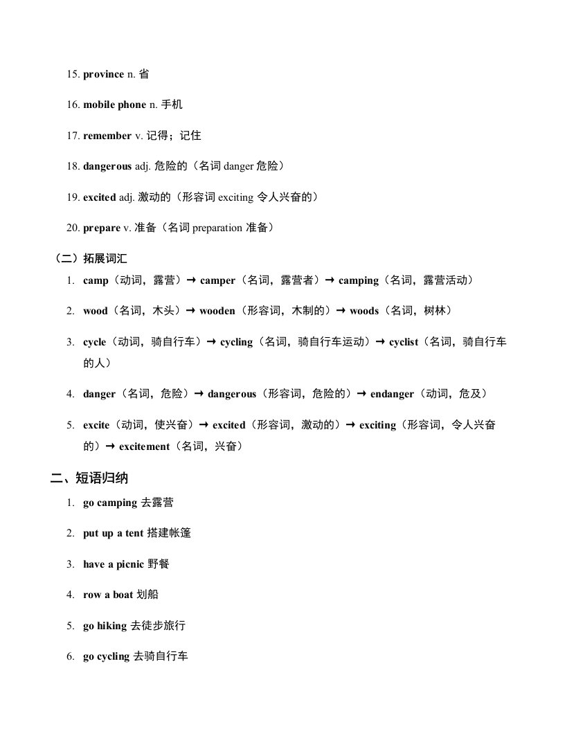 七下英语译林Unit 7 Outdoor fun 知识点总结与练习 QXYYYL-0186
