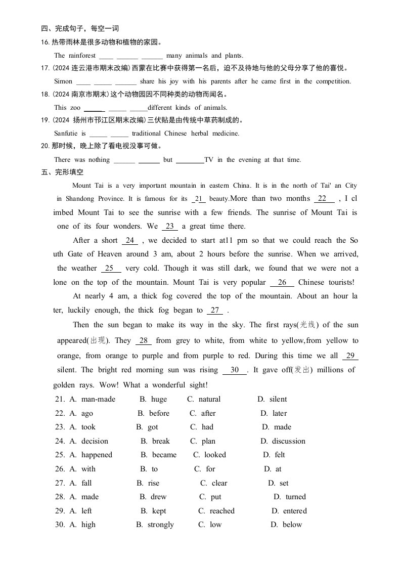 > 七下英语译林 Unit 6 Beautiful landscapes单元测试卷-(含答案)QXYYYL-0206