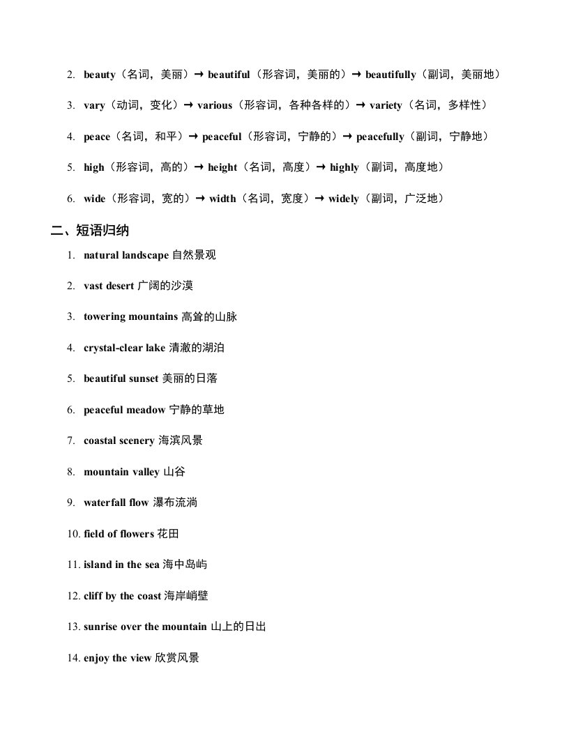 > 七下英语译林Unit 6 Beautiful landscapes 知识点总结与练习 QXYYYL-0185