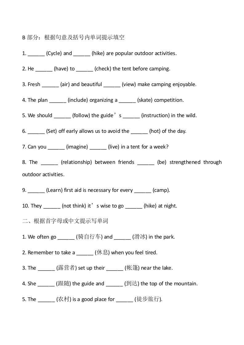 > 七下译林英语Unit7 Outdoor fun重点单词词组短语句型精练QXYYYL-0071
