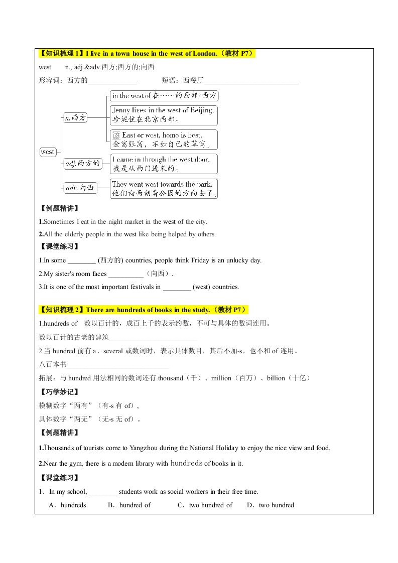 七下英语Unit 3冠词和地点方位介词(重点语法提升练)(译林版)(含答案)QXYYYL-0279