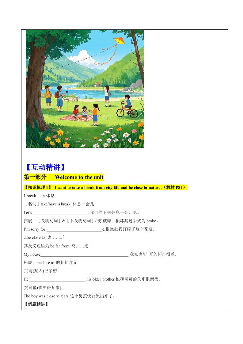 > 七年级下册英语(牛津译林版) U7 Outdoor fun学案QXYYYL-0445