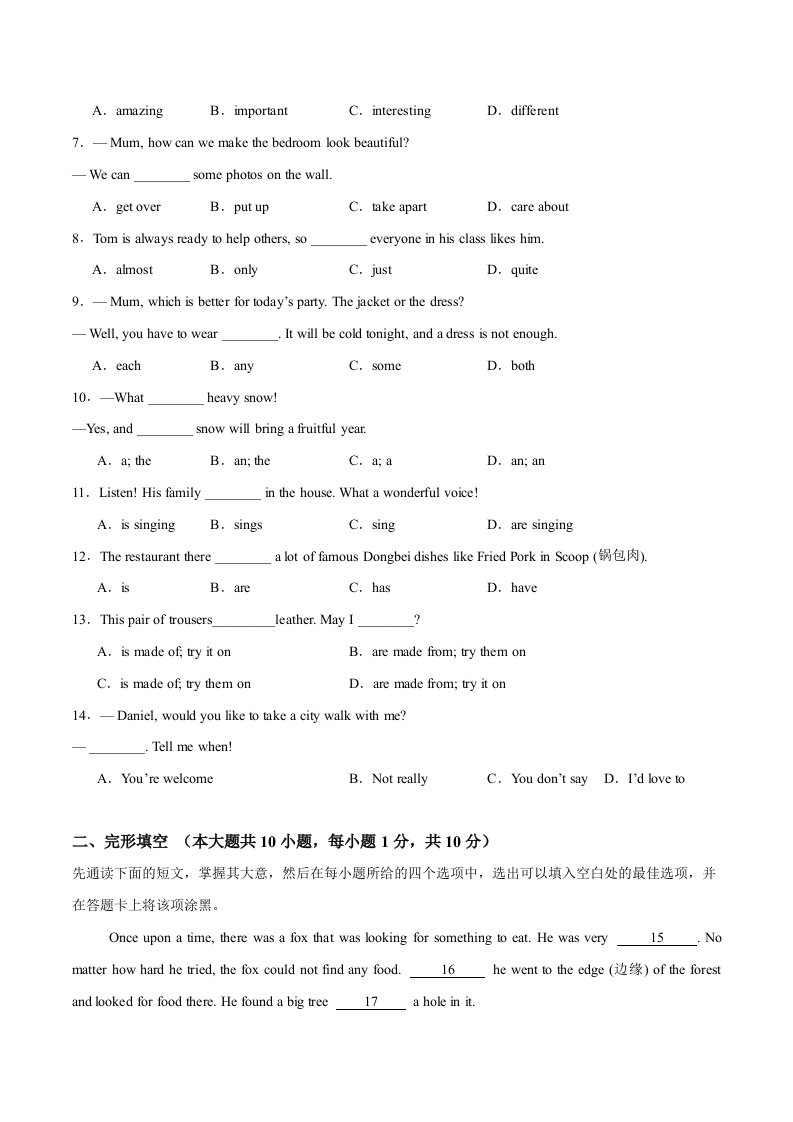 七下英语Unit 4语法填空精准练-(译林版)(含答案)QXYYYL-0264