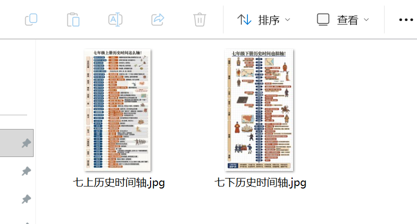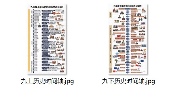 初中三年历史时间轴知识卡片,每学期各一张,共六张
