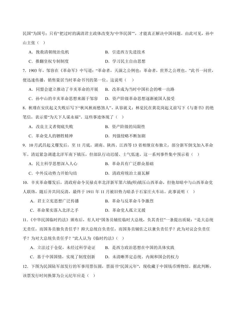 统编版历史八年级上册期中素养评估(含答案)BSLSTY-0113