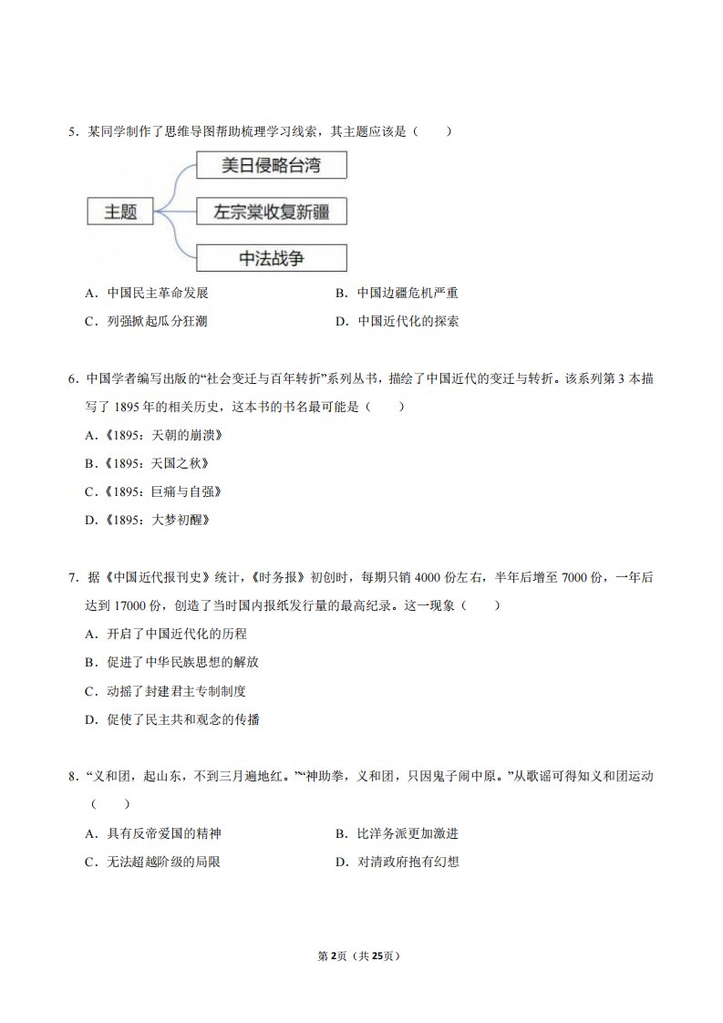 > 人教版八上历史期中真题卷(含答案)BSLSTY-0117