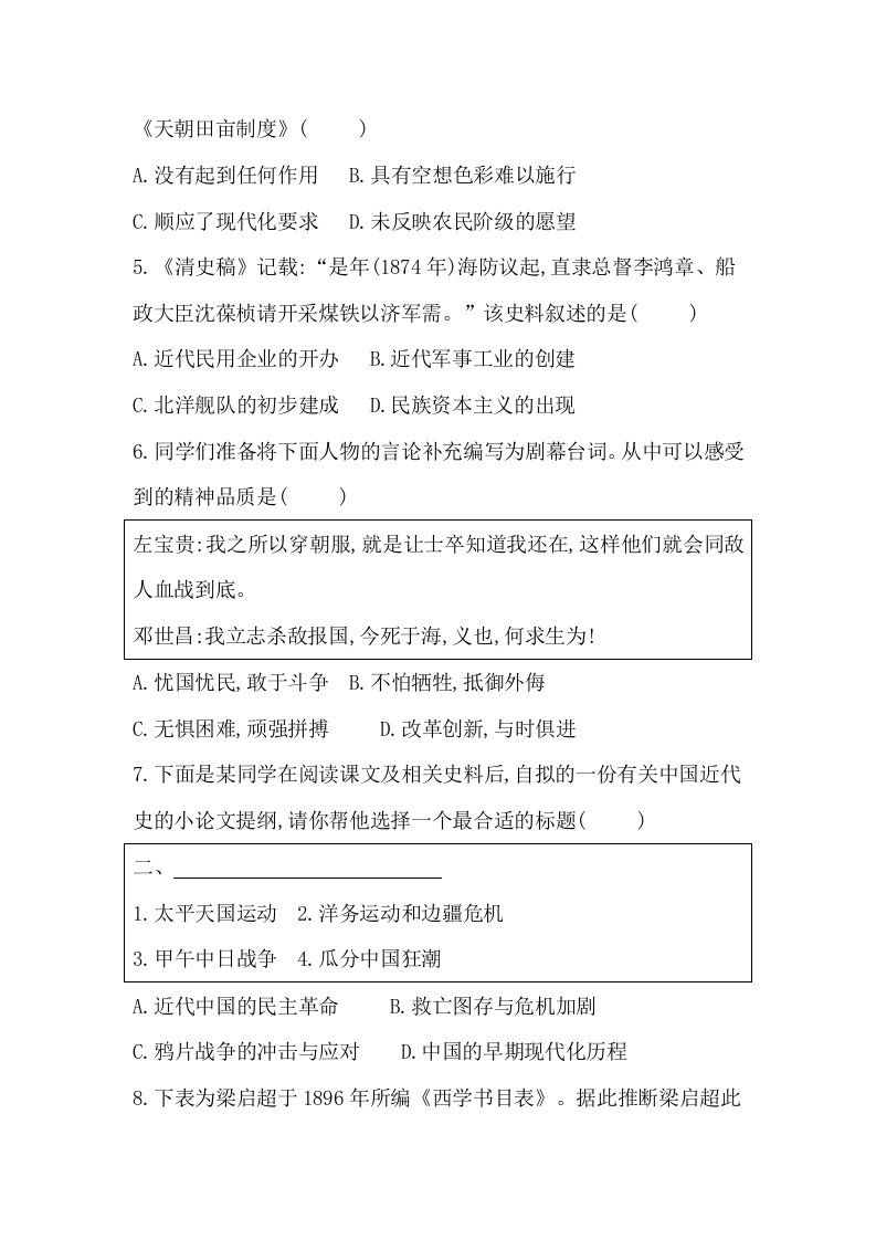 统编八上历史第一、二单元测试卷(含答案)BSLSTY-0111