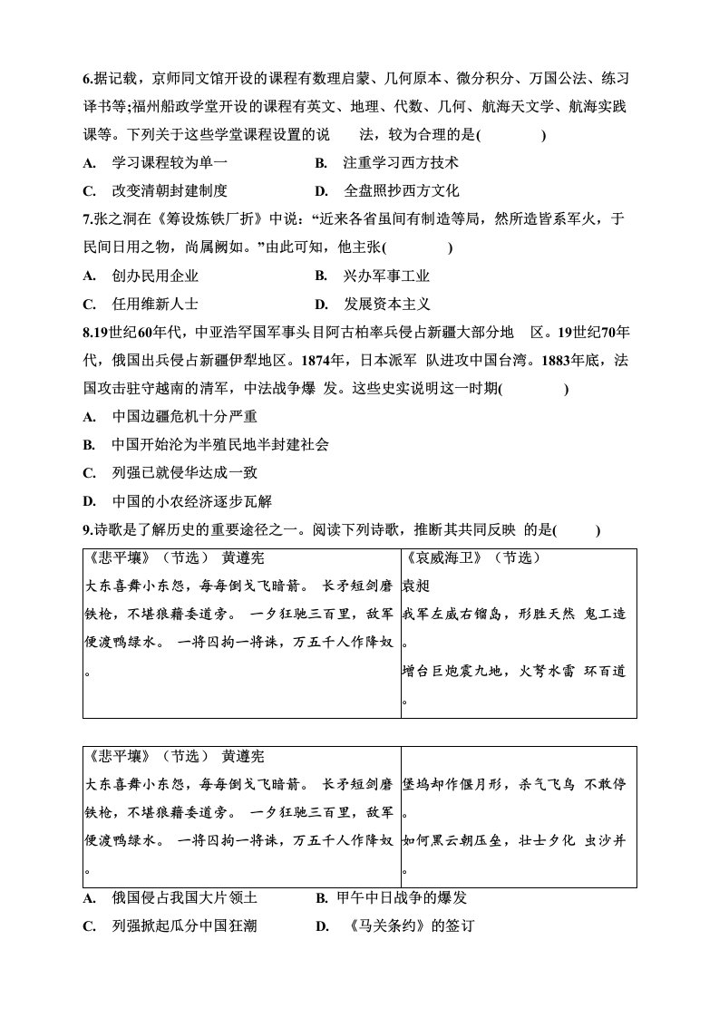 统编八上历史第一、二单元测试卷(含答案)BSLSTY-0111