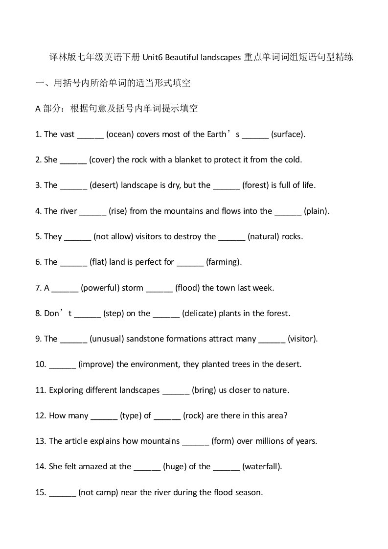 七下译林英语Unit6 Beautiful landscapes重点单词词组短语句型精练 QXYYYL-0070