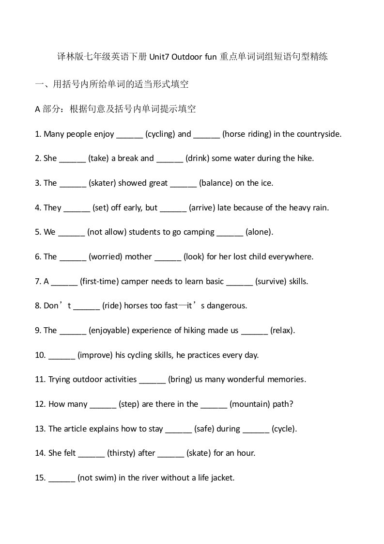 七下译林英语Unit7 Outdoor fun重点单词词组短语句型精练QXYYYL-0071