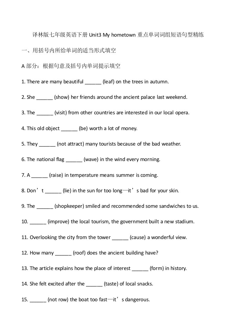 七下译林英语Unit3 My hometown重点单词词组短语句型精练QXYYYL-0067
