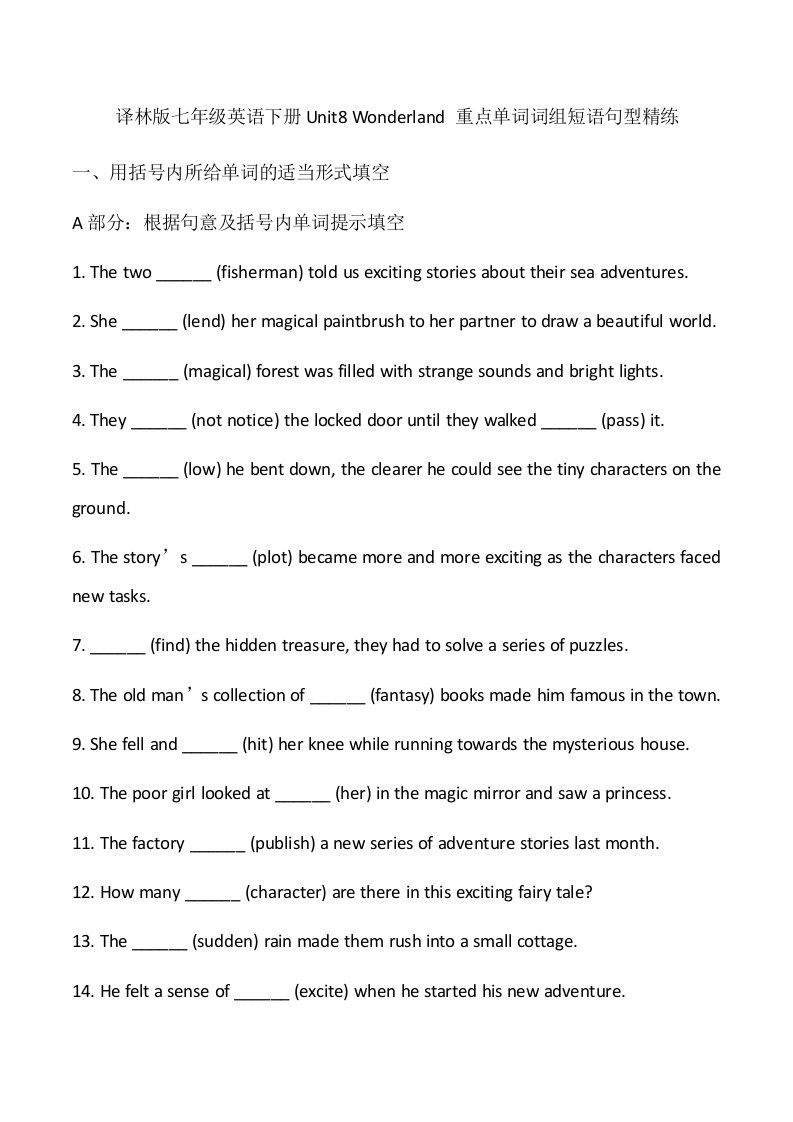 七下译林英语Unit8 Wonderland 重点单词词组短语句型精练QXYYYL-0072