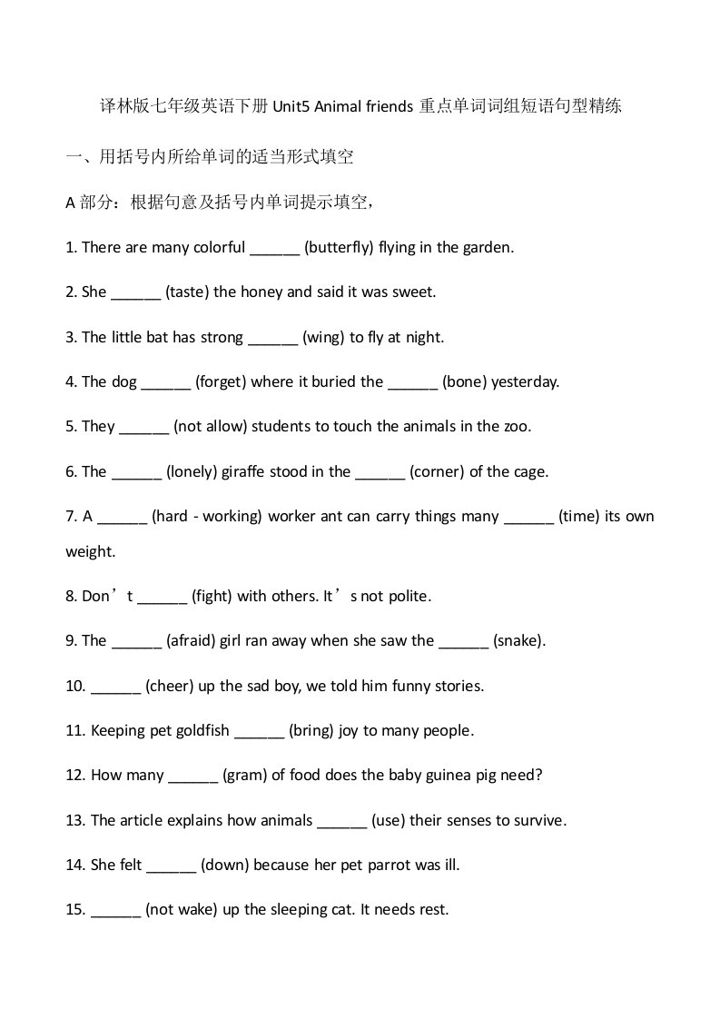 七下译林英语Unit5 Animal friends重点单词词组短语句型精练QXYYYL-0069