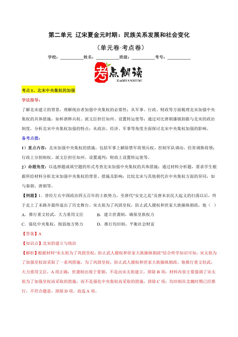 七下历史 第二单元 辽宋夏金元时期:民族关系发展和社会变化(单元卷)(含答案)QXLSBB-0020