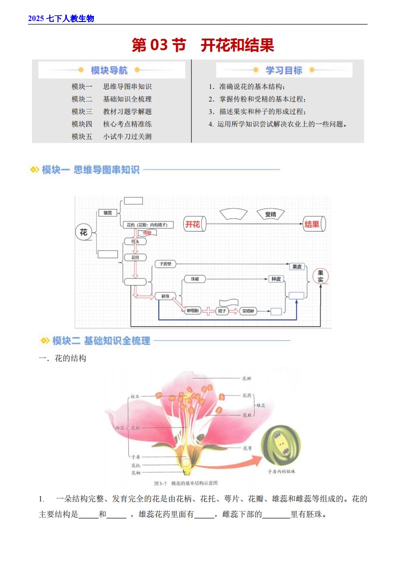 【七下人教生物】3.1.3 开花结果(含答案)QXSWRJ-0141