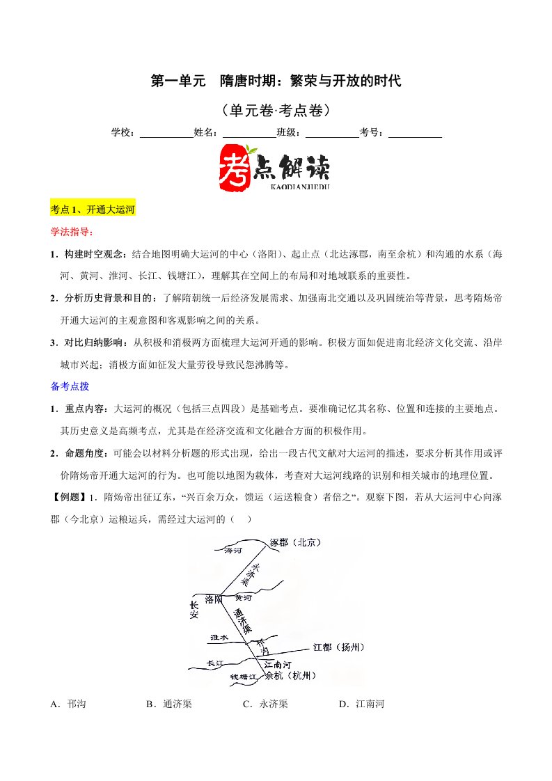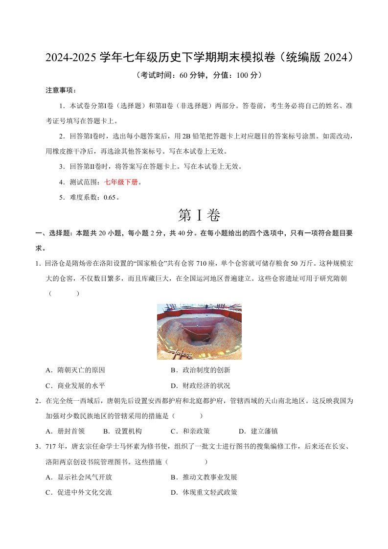 七下历史 第一单元 隋唐时期:繁荣与开放的时代(单元卷)(含答案)QXLSBB-0016