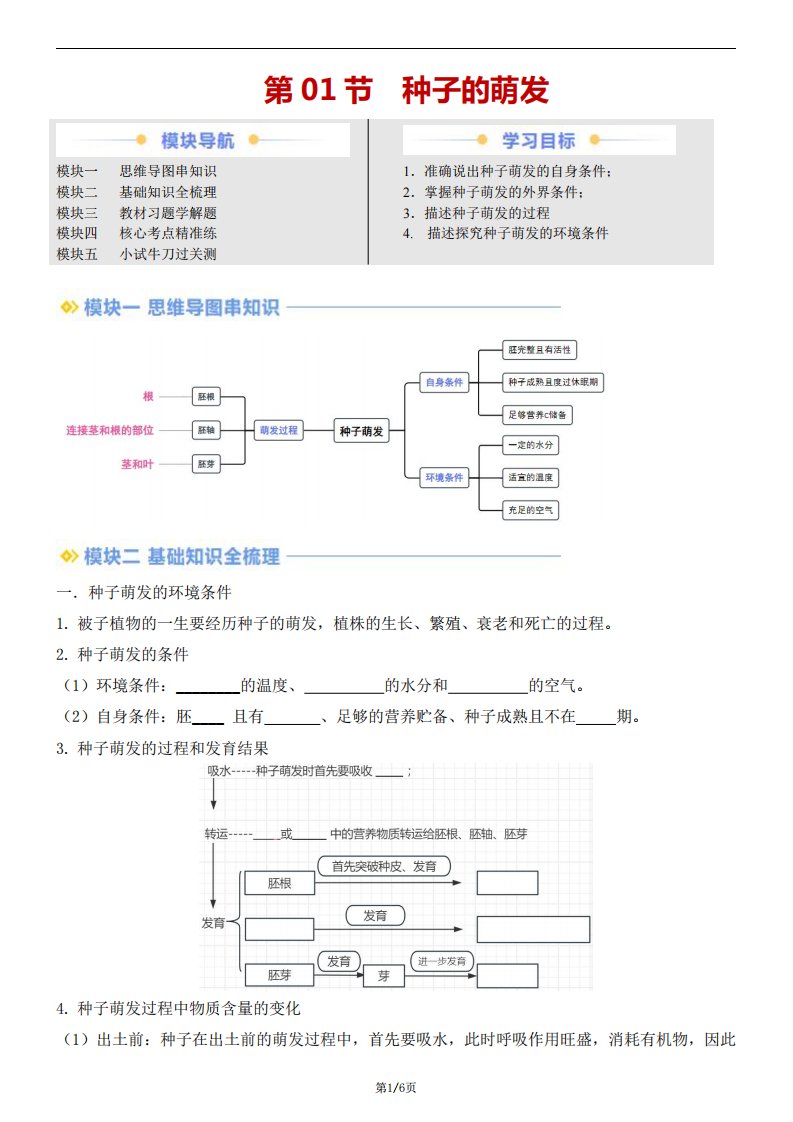 【七下人教生物】3.1.1 种子的萌发(含答案)QXSWRJ-0137