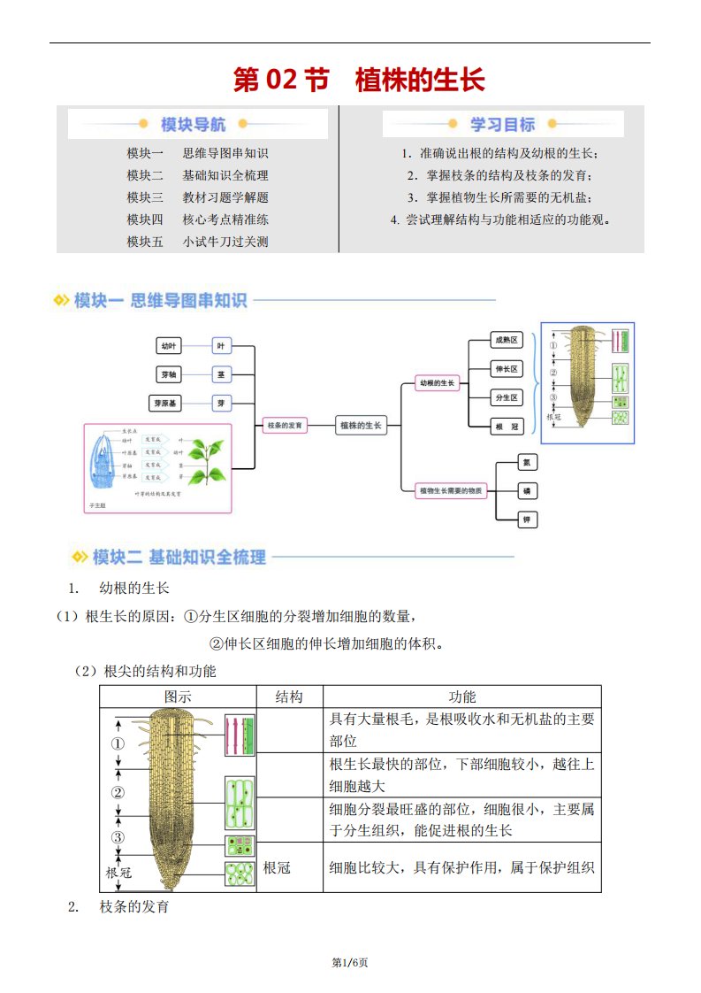 【七下人教生物】3.1.2 植株的生长(含答案)QXSWRJ-0139