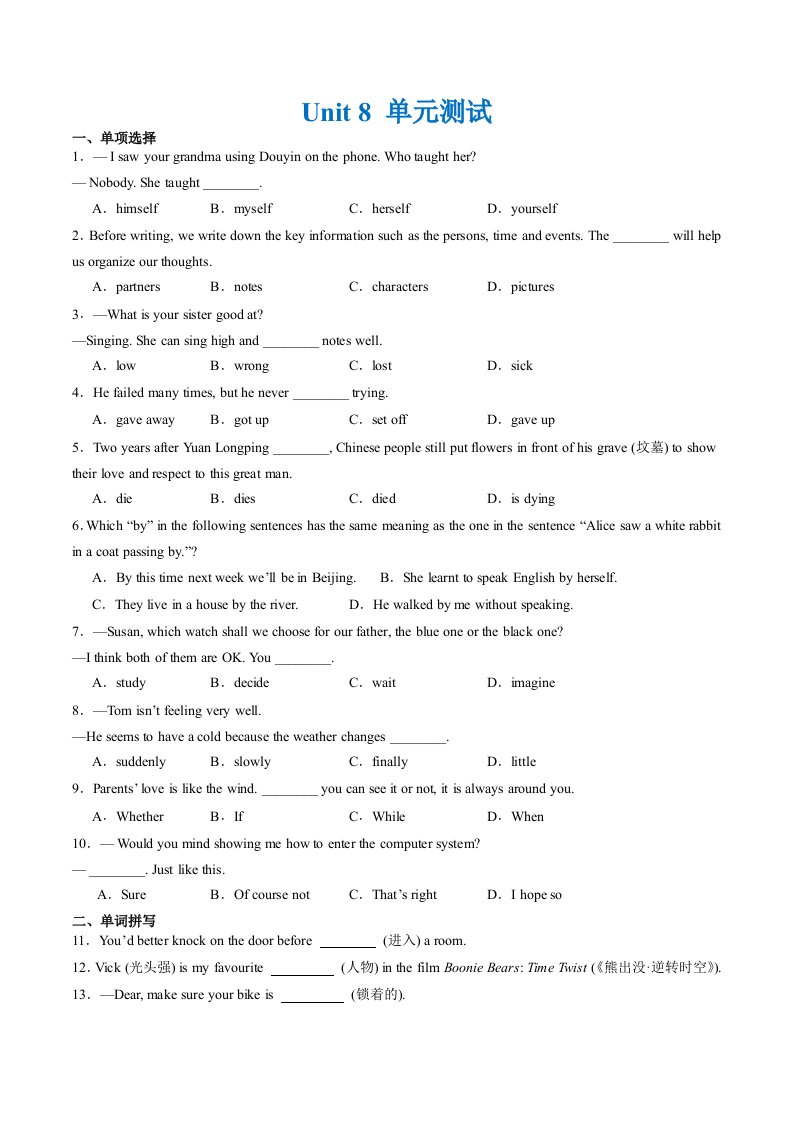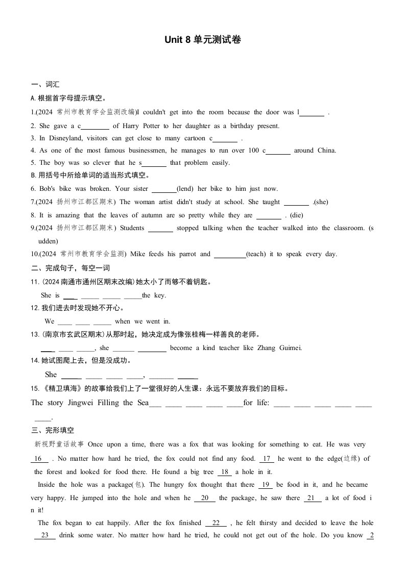 七下英语译林Unit 8 单元测试(含答案)QXYYYL-0225