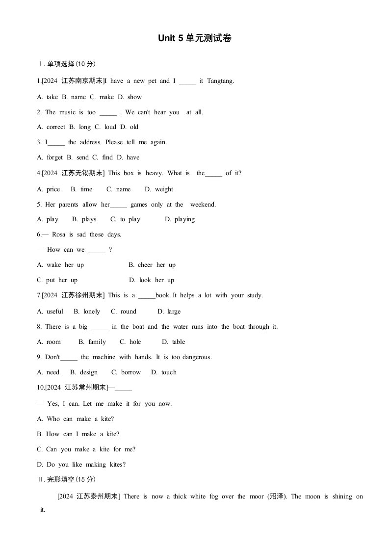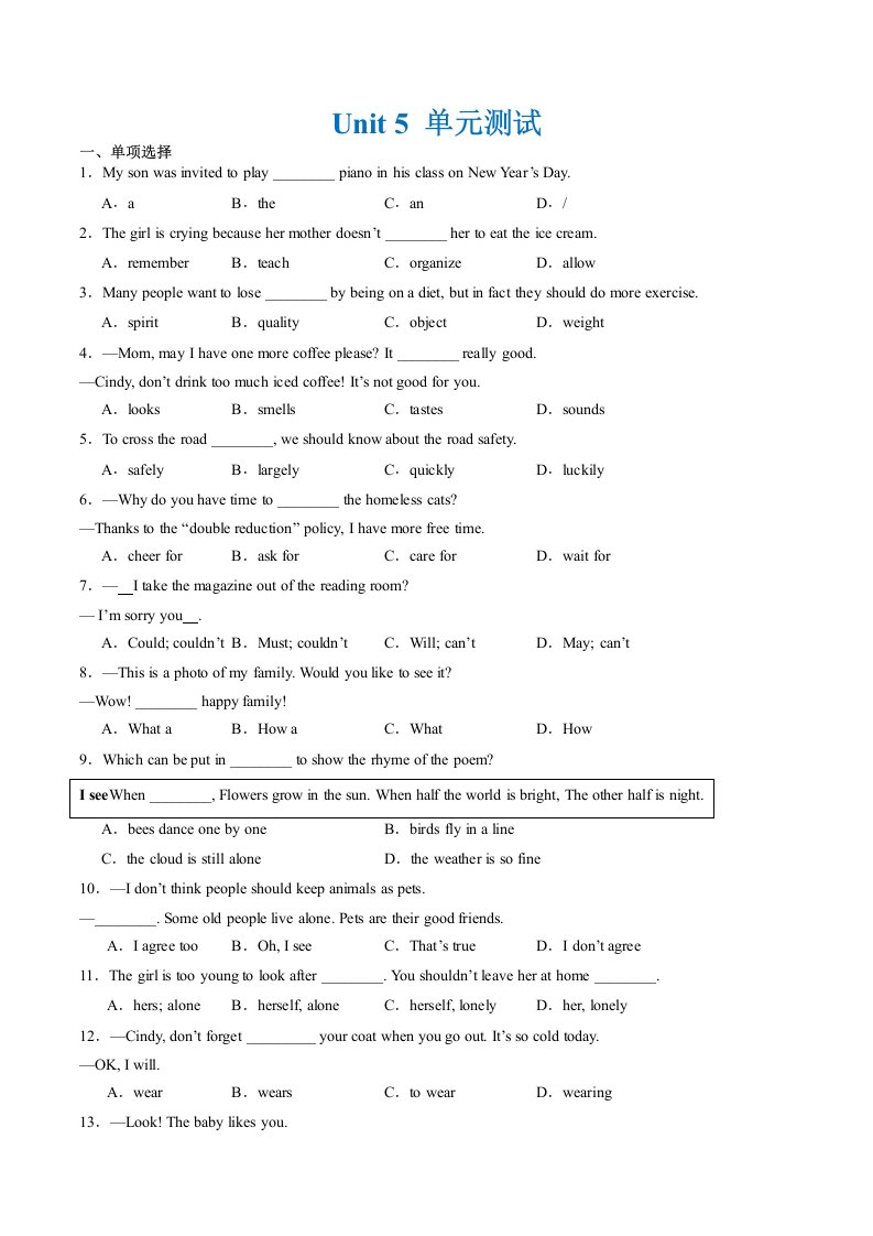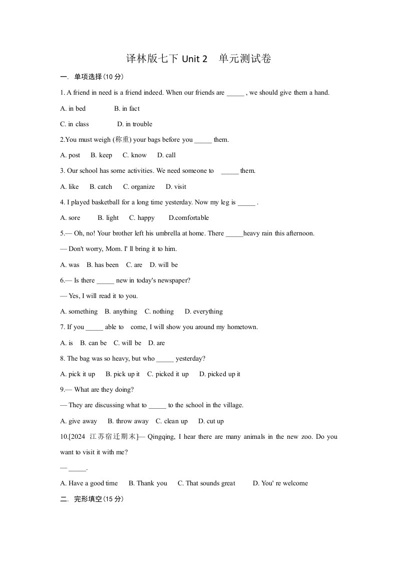 七下英语译林Unit 5 单元测试(含答案)QXYYYL-0219