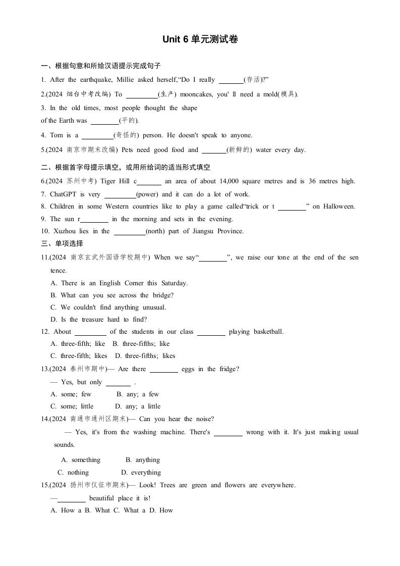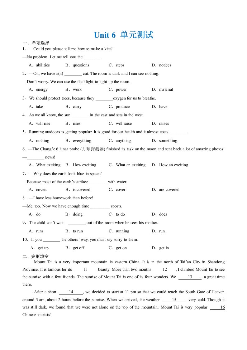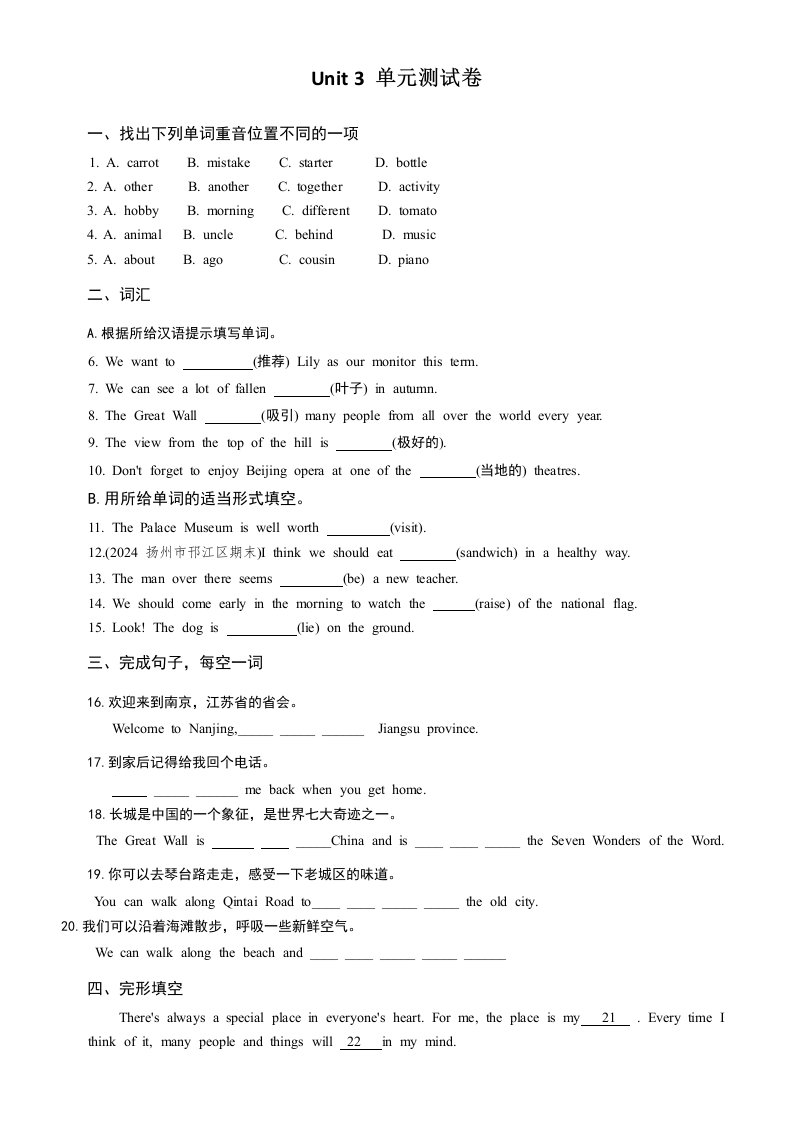 七下英语译林 Unit 6 Beautiful landscapes单元测试卷-(含答案)QXYYYL-0206