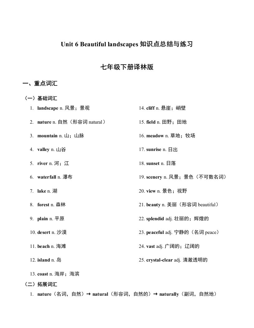 七下英语译林Unit 6 Beautiful landscapes 知识点总结与练习 QXYYYL-0185