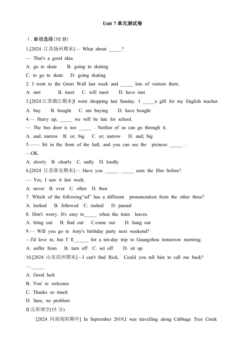 七下英语译林 Unit 7 Outdoor fun单元测试卷(含答案)QXYYYL-0207
