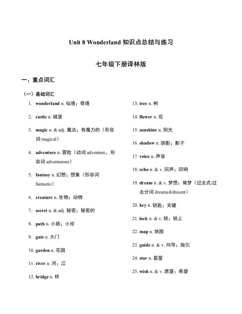 七下英语译林Unit 8 Wonderland 知识点总结与练习 QXYYYL-0187