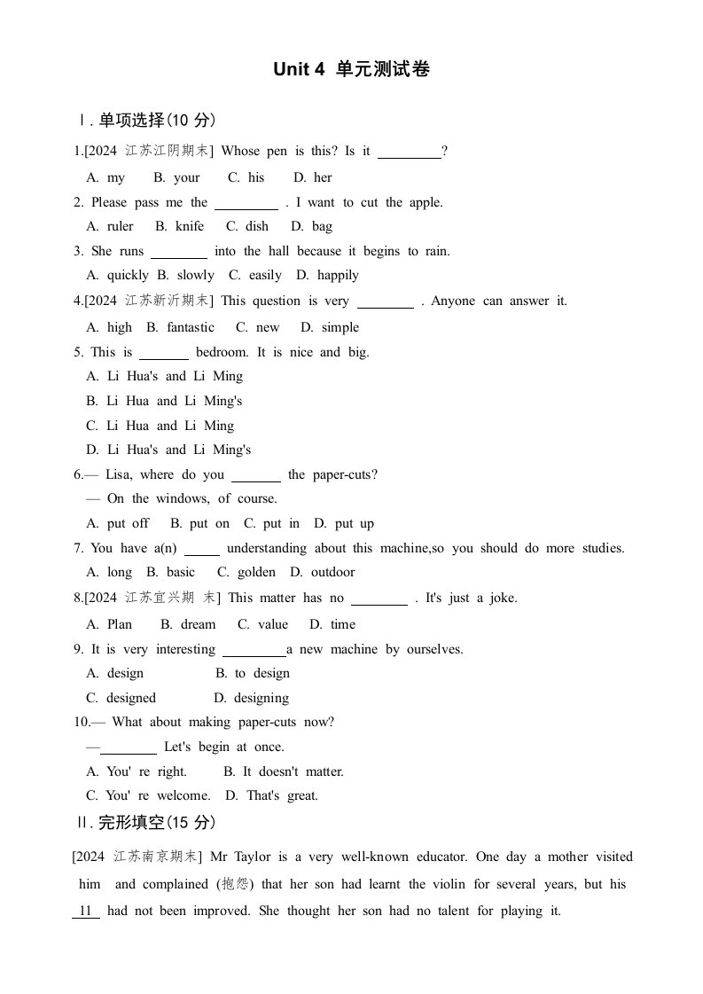 七下英语译林 Unit4 Chinese folk art 单元测试卷(含答案) QXYYYL-0209