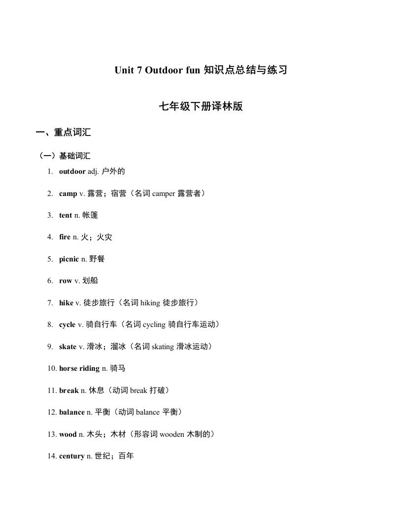 七下英语译林Unit 7 Outdoor fun 知识点总结与练习 QXYYYL-0186