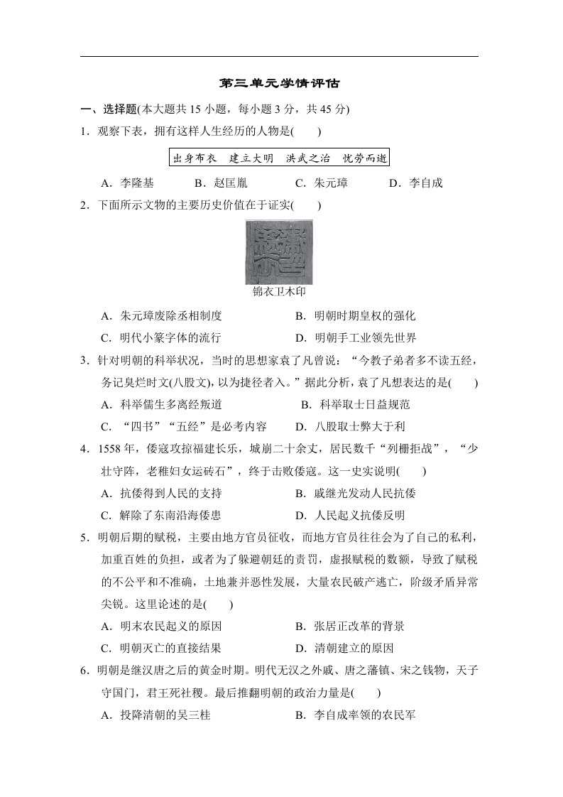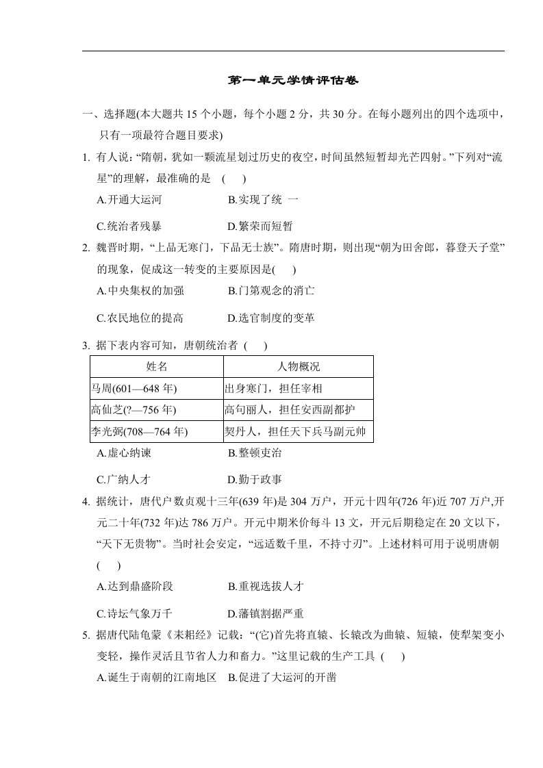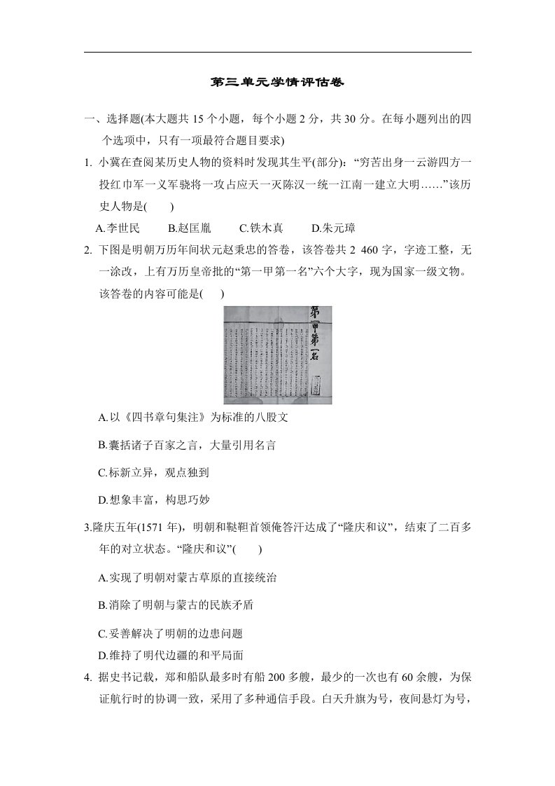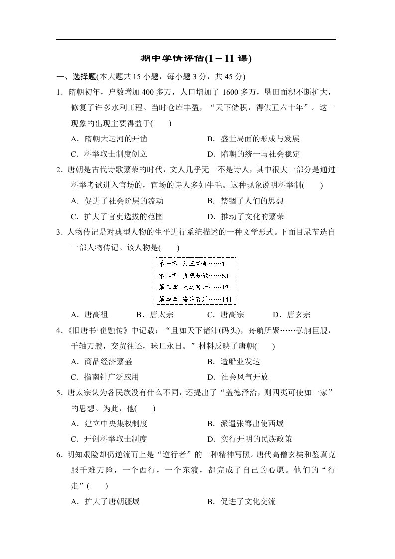 期中学情评估卷(第1-11课)QXLSBB-0031