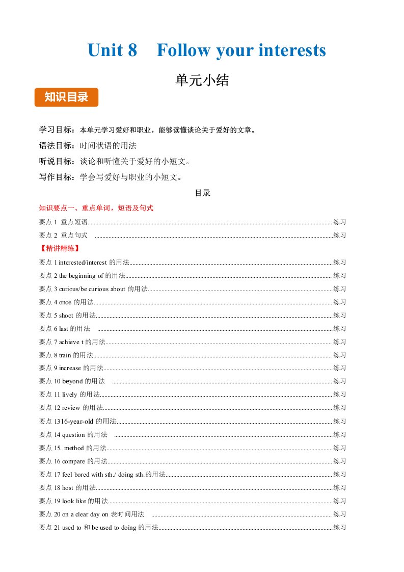 七下英语沪教牛津版 Unit 8 知识梳理(含答案)QXYYHJ-0108
