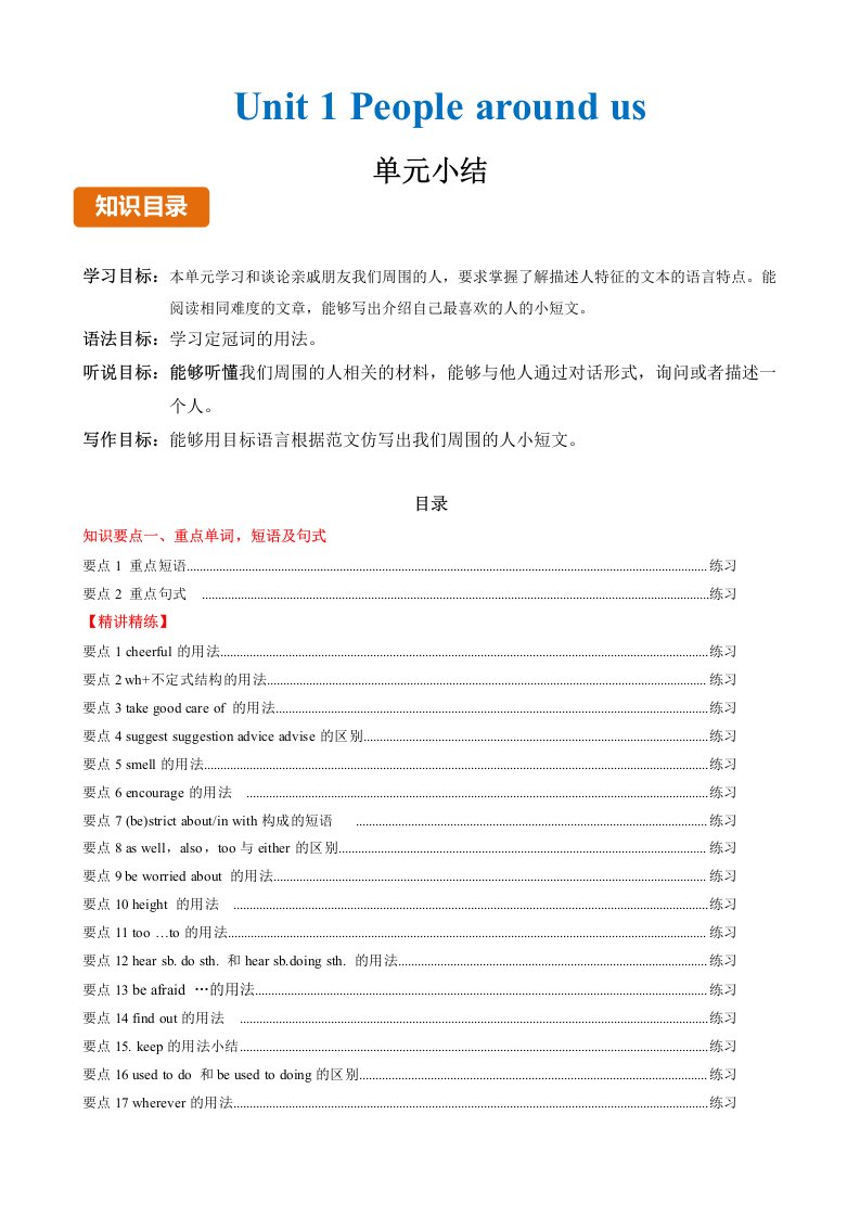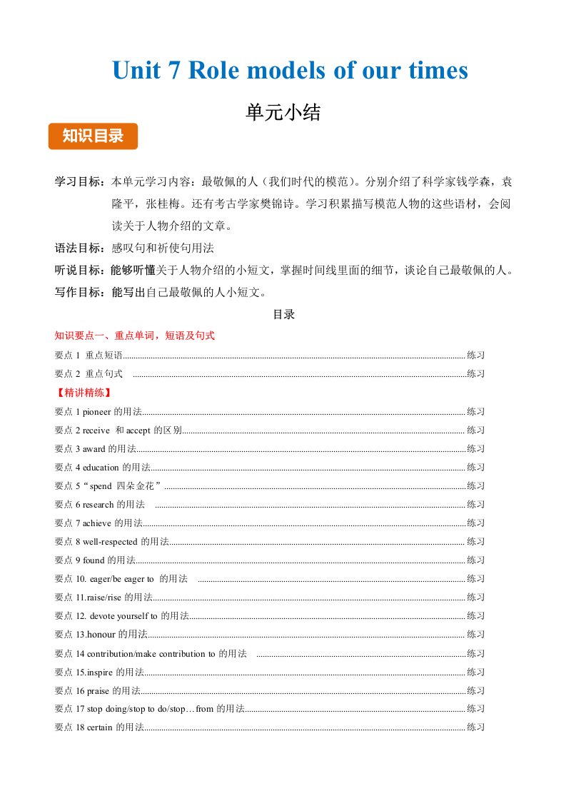 七下英语沪教牛津版 Unit 1 知识梳理(含答案)QXYYHJ-0094