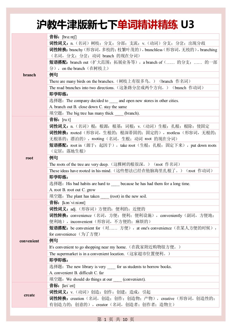 新七下英语沪教牛津 单词精讲精练U3(含答案)QXYYHJ-0069