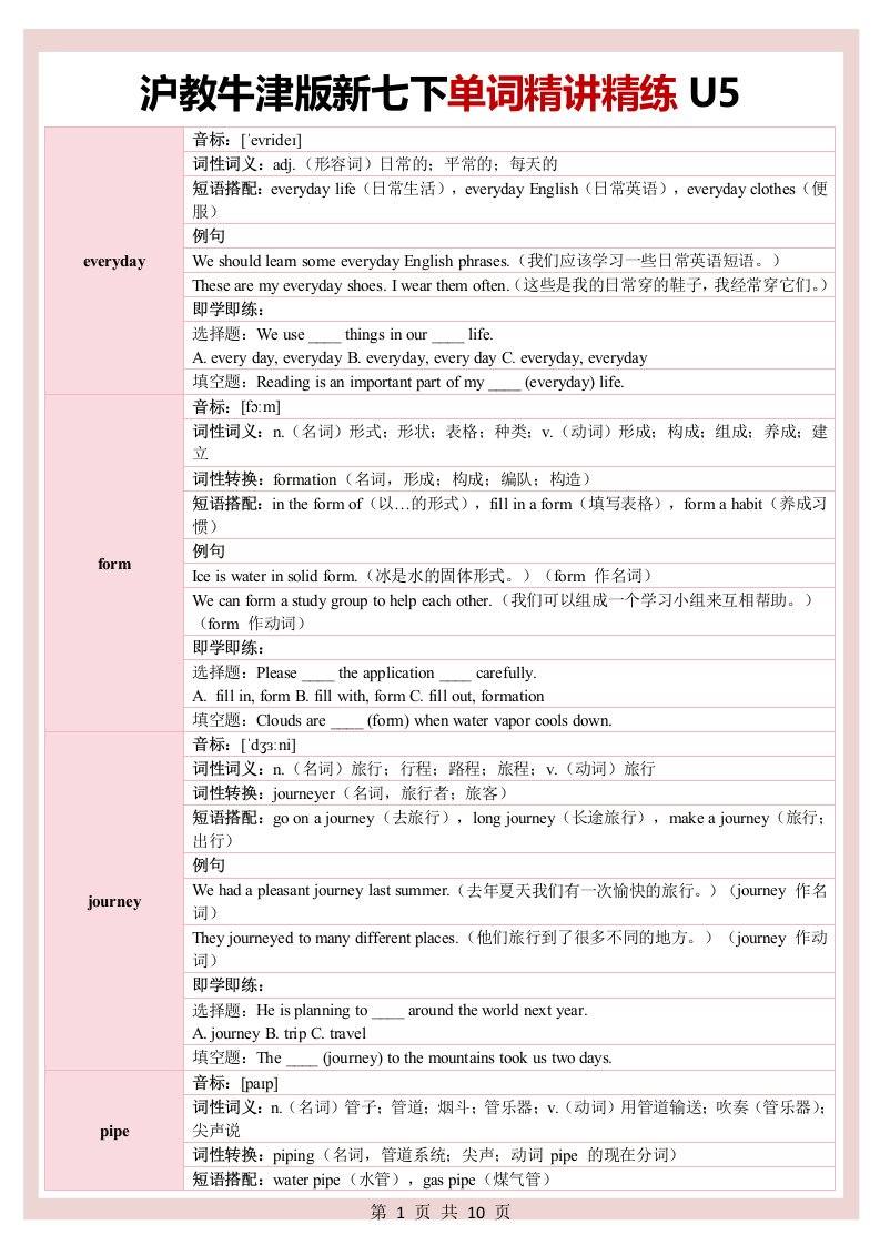 新七下英语沪教牛津 单词精讲精练U5(含答案)QXYYHJ-0073