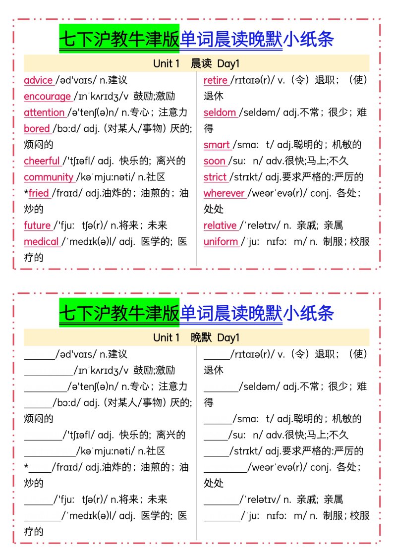07-新七下英语沪教牛津版单词晨读晚默QXYYHJ-0092