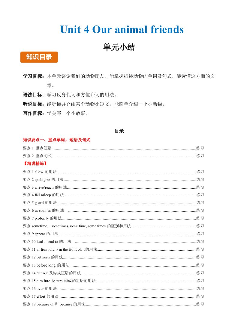 七下英语沪教牛津版 Unit 4 知识梳理(含答案)QXYYHJ-0100